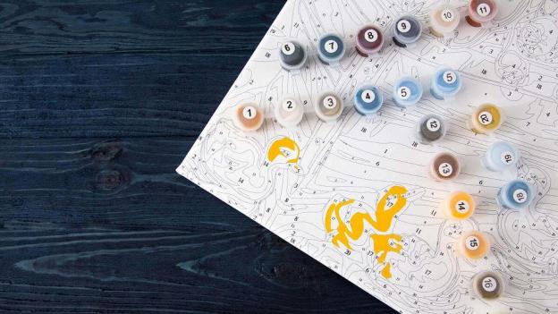 Краски в комплекте могут быть двух видов: готовые оттенки распределены по баночкам и пронумерованы, либо производитель предлагает базовые цвета, которые нужно смешивать для получения нужного тона. Количества пигментов достаточно для создания шедевра. Если вы впервые беретесь за кисть, рекомендуем начать с картонного холста, но в таком случае вы пожертвуете текстурой картины.