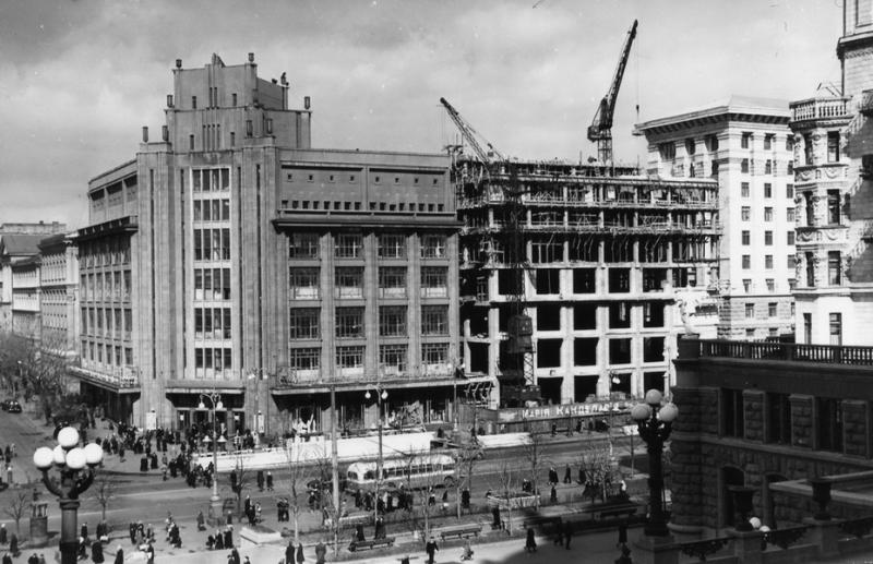 За время войны патриархальный довоенный Крещатик умер навсегда. После советская власть объявила конкурс на его отстройку, задействовала колоссальный человеческий ресурс и построила совершенно новую улицу.