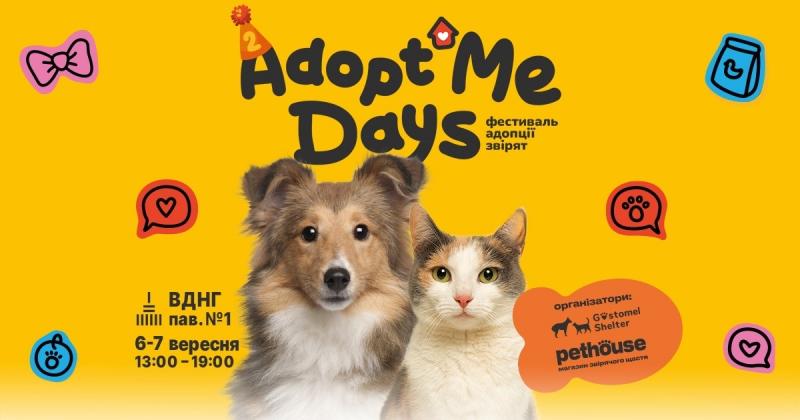6-7 вересня у Києві відбудеться 17-й фестиваль AdoptMe Days, де шукатимуть дім тваринам із притулків. У першому павільйоні ВДНГ на гостей чекатимуть 60 учасників з 500 котиками та песиками, готовими поїхати у люблячі родини.