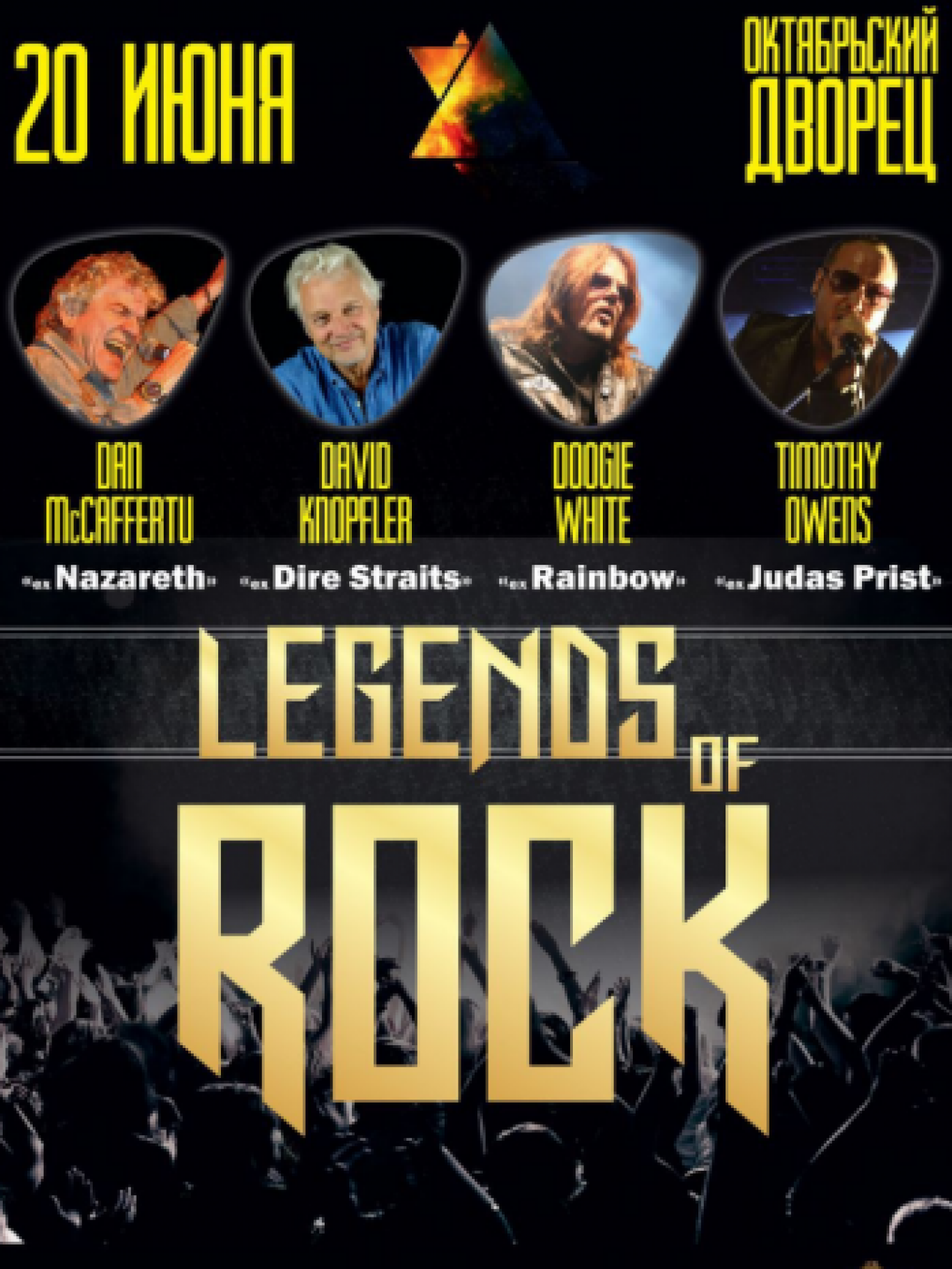 Перед фанатами рока выступят два легендарных шотландца: экс-лидер культовой рок-группы Nazareth Дэн Маккаферти и вокалист команды Rainbow Дуги Уайт. Кроме того, сверхмощный драйв рок-музыки и невероятную энергетику подарят один из создателей команды Dire Straits — британец Дэвид Нопфлер, а также участник коллектива Judas Priest — американец Тим Оуэнс. Лучшие хиты на сцене Октябрьского дворца рок-идолы исполнят в сопровождении симфонического оркестра.