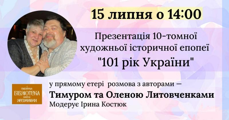 Україна — це не територія. Україна — це Духовна, Вічна, Невмируща сутність, нерозривно пов’язана з життям і безцінним досвідом багатьох поколінь людей, їхнім творчим інтелектуальним потенціалом. Зв’язок цей має по-справжньому містичний характер. Про це йдеться в художній історичній епопеї «101 рік України», створеній Тимуром і Оленою Литовченками в 2017-2020 роках.