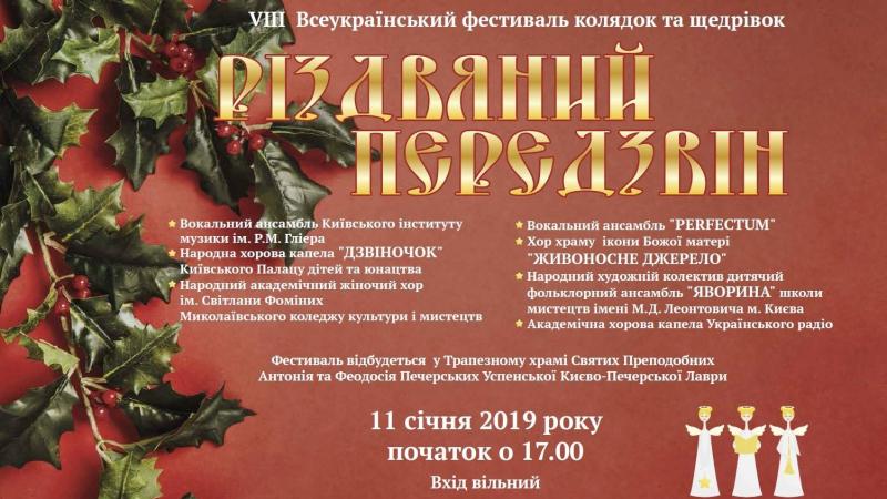 Фестиваль колядок та щедрівок "Різдвяні передзвони" пройде у Києво-Печерській Лаврі 11 січня. Початок - о 17.00. Вхід - вільний.