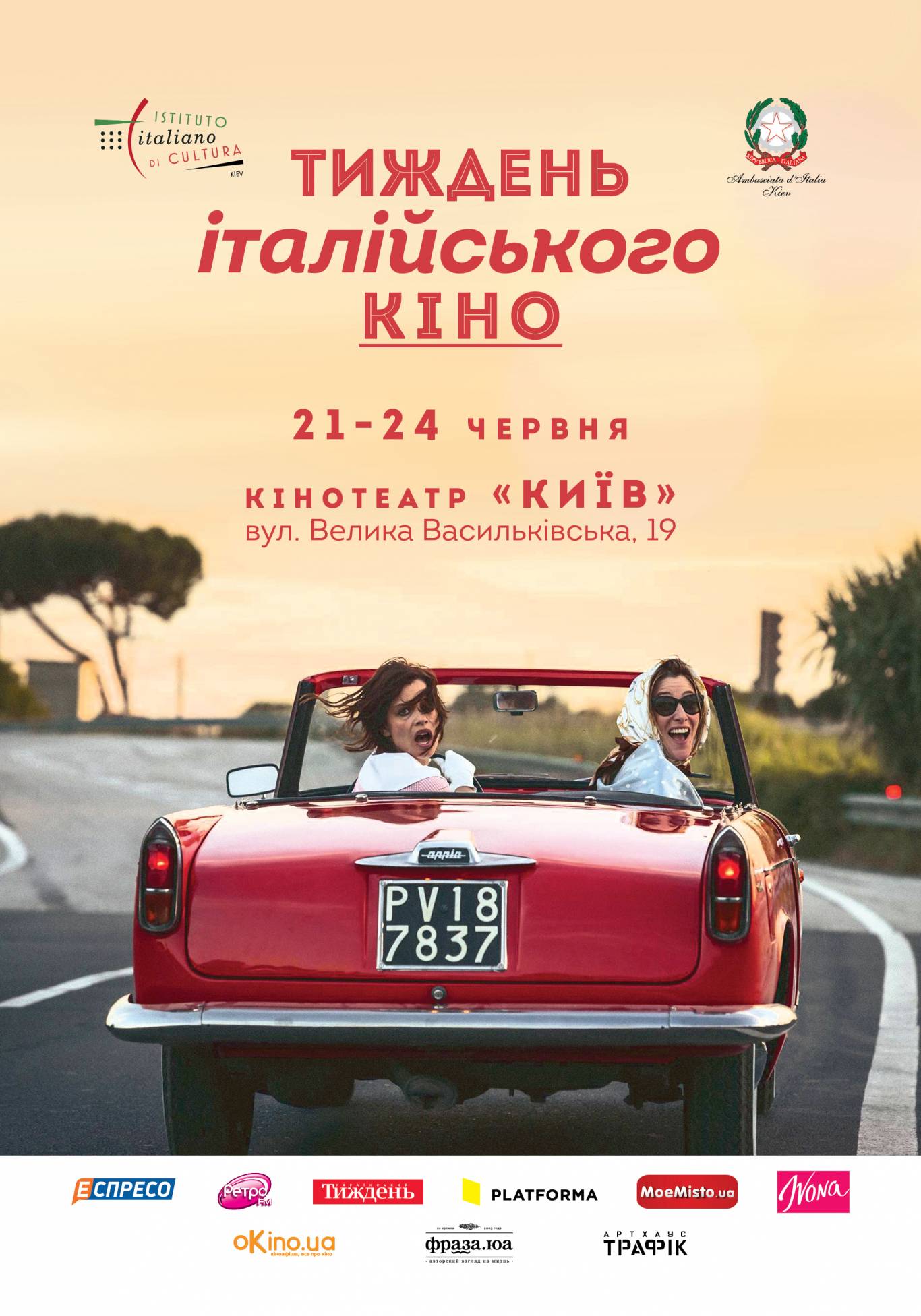 Організатори «Тижня італійського кіно» – Італійський інститут культури в Україні, Посольство Італії в Україні та компанія «Артхаус Трафік». Фестиваль триває у Києві 21 – 24 червня, після чого відвідає також Дніпро, Львів, Одесу і Харків. Усі фільми демонструються мовою оригіналу з субтитрами.