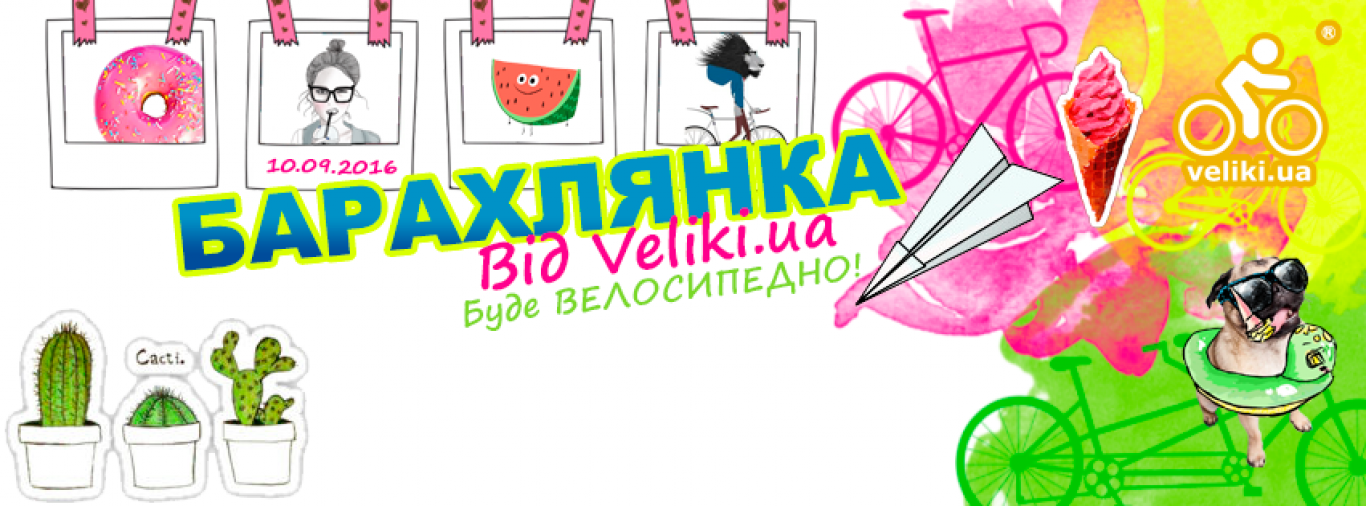 VELIKI.UA відмовляються завершувати літо!:) Саме тому 10 Вересня ми запрошуємо тебе, разом з друзями на грандіозну "ВЕЛОБАРАХЛЯНКУ" - велофест-розпродаж, котрий пройде за адресою вул. Дегтярівська 51В (https://goo.gl/maps/4iFu2mvjT742)