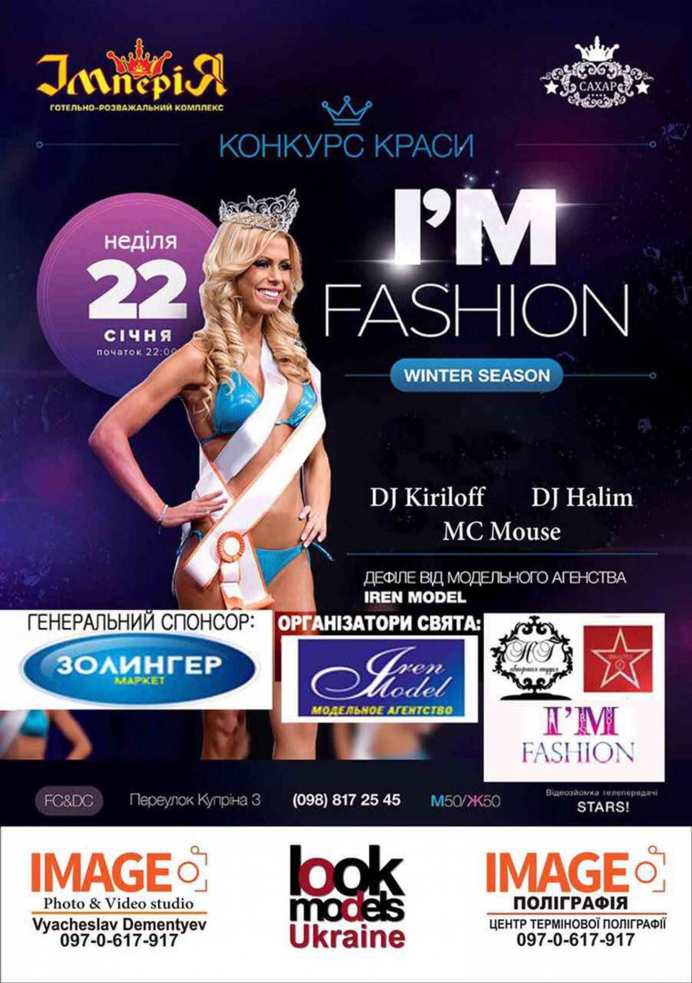 Нічний клуб "Сахар" запрошує на конкурс краси "I`M FASHION", який відбудеться 22 січня, початок о 22:00.