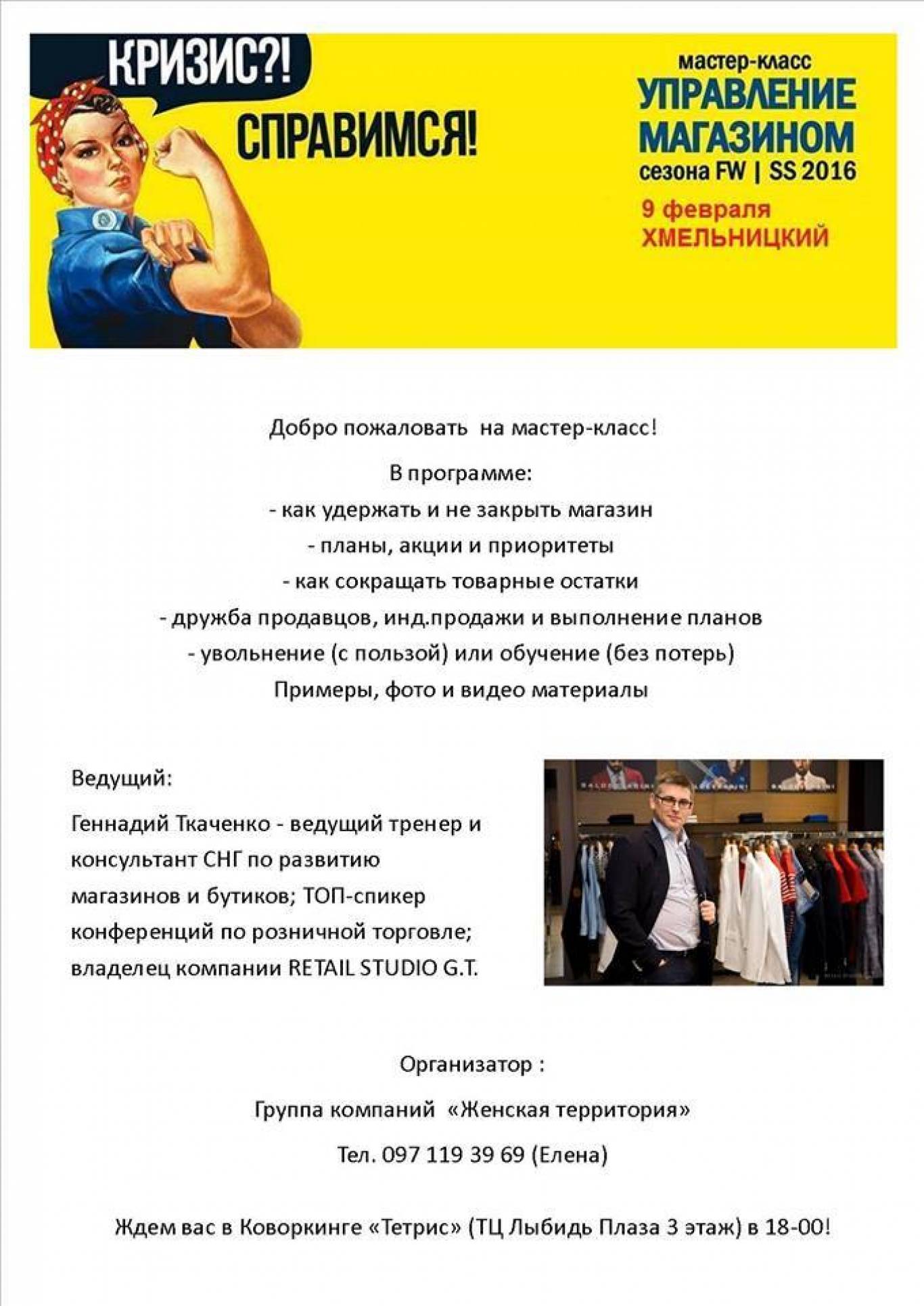 Как нужно управлять магазином, чтобы удерживать стабильную выручку, а также обеспечить ее рост??? 9 февраля в Хмельницком! Мастер-класс: "Управление магазином: сезона FF | SS 2016".