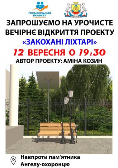 12 вересня гостей та жителів міста запрошують на урочисте відкриття проекту «Закохані ліхтарі». Подія розпочнеться о 19:30 біля Донецького національного медичного університету (центральний вхід).