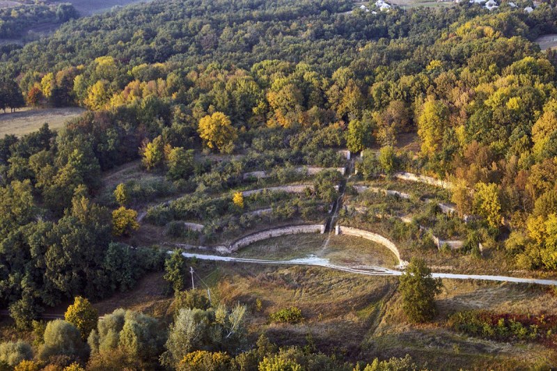 «Співочими терасами» називають незвичайний фруктовий сад у вигляді великого амфітеатру. Цей амфітеарт під відкритим небом відомий своїми дивовижними акустичними властивостями. Справа в тому, що у цегляні стіни тут вмуровані спеціальні труби різної величини і з різних металів. Через них і проходить звук, створюючи особливий ефект. Тому складається враження, ніби самі тераси видають мелодії. Це архітектурна пам’ятка кінця ХІХ століття, з усіх боків обросла фруктовими деревам.