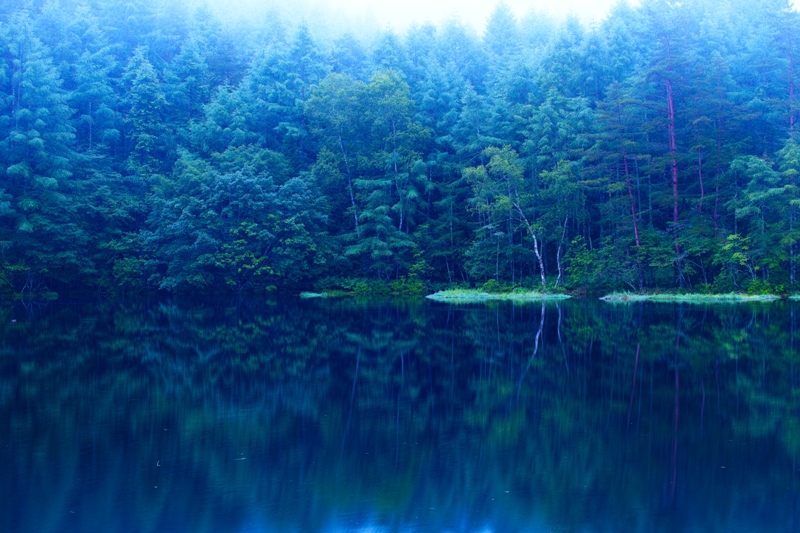 Озеро вулканічного походження, в ньому є 2 вирви — вважається, що це кратери давнього вулкана, заповнені водою. Його живить сірчане джерело. На плаваючих стеблах очерету осідає сірка. Вона надає синювато-блакитного відтінку воді, від чого й пішла назва. Вода в Синьому озері насичена сірководнем, тож у ній не водяться ні риби, ні земноводні, ні комахи.