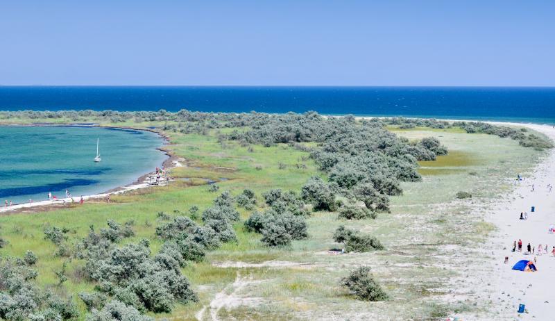 Найбільший острів України, який розташований неподалік курортних центрів Скадовськ та Лазурне — заповідна зона, велика кількість місцевої флори та фауни занесена в Червону Книгу України. На острові можна побачити благородних оленів, в прибережних чагарниках рогозу й очерету ховаються муфлони. На острові багато лисиць, оскільки на них ніхто спеціально не полює, і вони бігають навіть удень.