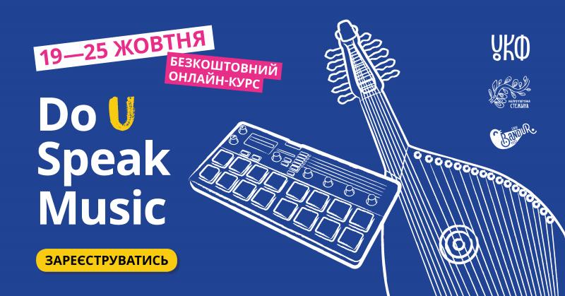 19 жовтня стартує тижневий практичний безкоштовний онлайн курс для музикантів та музичних менеджерів зі всієї України “Do U Speak Music” (більше інформації - тут http://musicup.in.ua/). Унікальна можливість покращити знання з англійської мови, дізнатись корисну інформацію про практичний менеджмент та маркетинг у музиці, та стати активним учасником української та міжнародної музичної спільноти. Курс збудований у форматі інтерактивних відео лекцій, де музикантки- блогерки англійською мовою розкривають найбільш актуальні теми для сучасних музикантів, а це про брендування, рекламу, роботу із соціальними мережами, пошук коштів для гурту, відомі музичних онлайн платформи, організацію турів та онлайн концертів, а також краудфандинг у музиці.