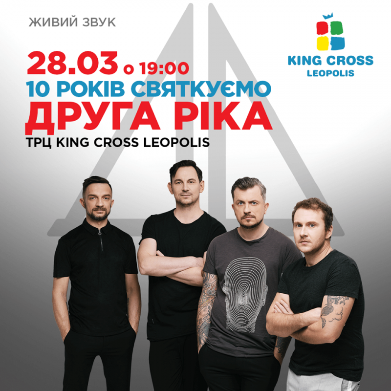 Серед зіркових артистів, які завітають на святкування Дня народження ТРЦ King Cross Leopolis - гурт "Друга ріка"! Виступ відбудеться 28 березня о 19.00.
