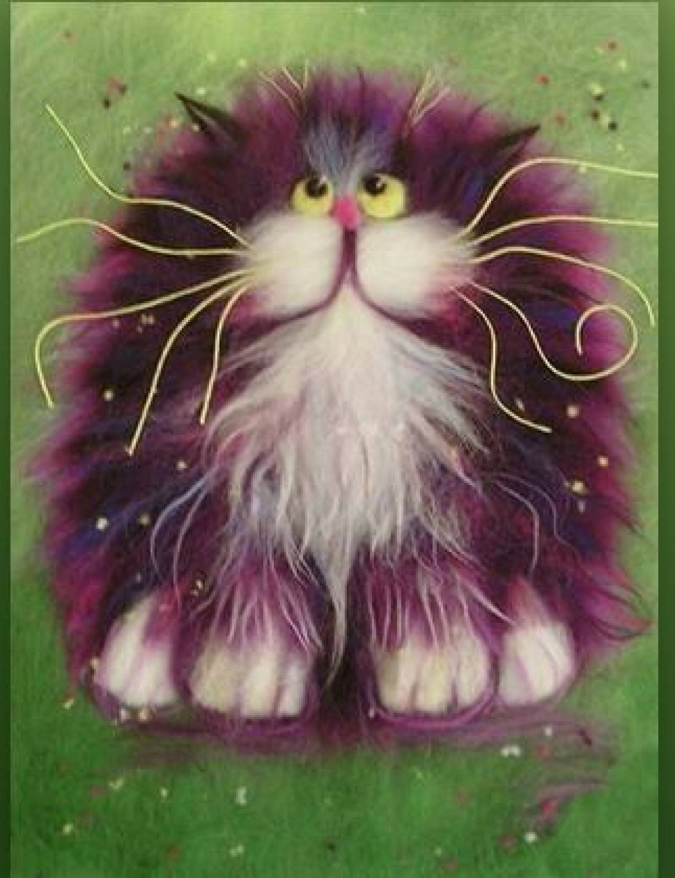 Учасники за допомогою шерсті намалюють пухнастого кота.
