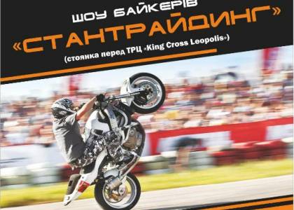 Трюкова їзда на мотоциклі проходитиме у ТРЦ King Cross Leopolis 25 липня. Початок - о 13 годині. Вхід - безкоштовний.