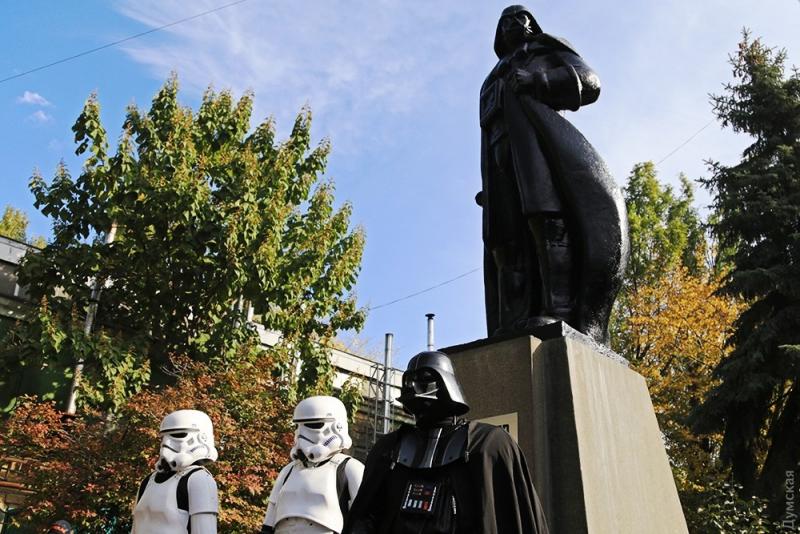Памятник Дарту Вейдеру - в связи с законом о декоммунизации подлежат демонтажу все памятники, связанные с эпохой коммунизма, но в Одессе подошли к этому креативно. Скульптор Милов переделал памятник Ленина, преобразив его в Дарта Вейдера и таким образом, появился первый памятник этого персонажа.