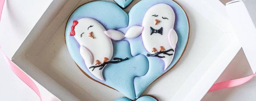 1) большой "разобранный" пряник на двоих + несколько сердечек на каждого;