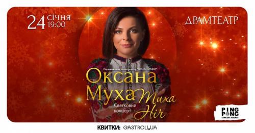 Різдвяні вечори з Оксаною Мухою – це щира, душевна і дружня коляда. У новій концертній програмі співачки - автентичні та авторські колядки у несподіваних аранжуваннях. Слухачі почують як рідкісні коляди з усіх куточків України, так і всім відомі колядки «Добрий вечір тобі», «Бог ся рождає», «Тиха ніч», «На небі зірка ясна засяла», що з року в рік звучать у кожній українській родині.
