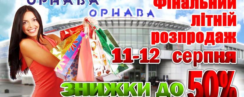 ТЦ Орнава наприкінці літа робить приємний подарунок своїм відвідувачам - знижки до - 50% на всі товари в перший тиждень місяця.