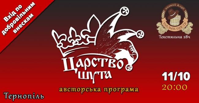 Тернопіль - зустрічай!!! На багаточисельні прохання "ЦАРСТВО ШУТА" (триб'ют проект пам'яті М.Ю.Горшеньова) знову в файному місті! Чекаємо на тебе 11-го жовтня в пабі "Хмільне Щастя". Початок о 21.00