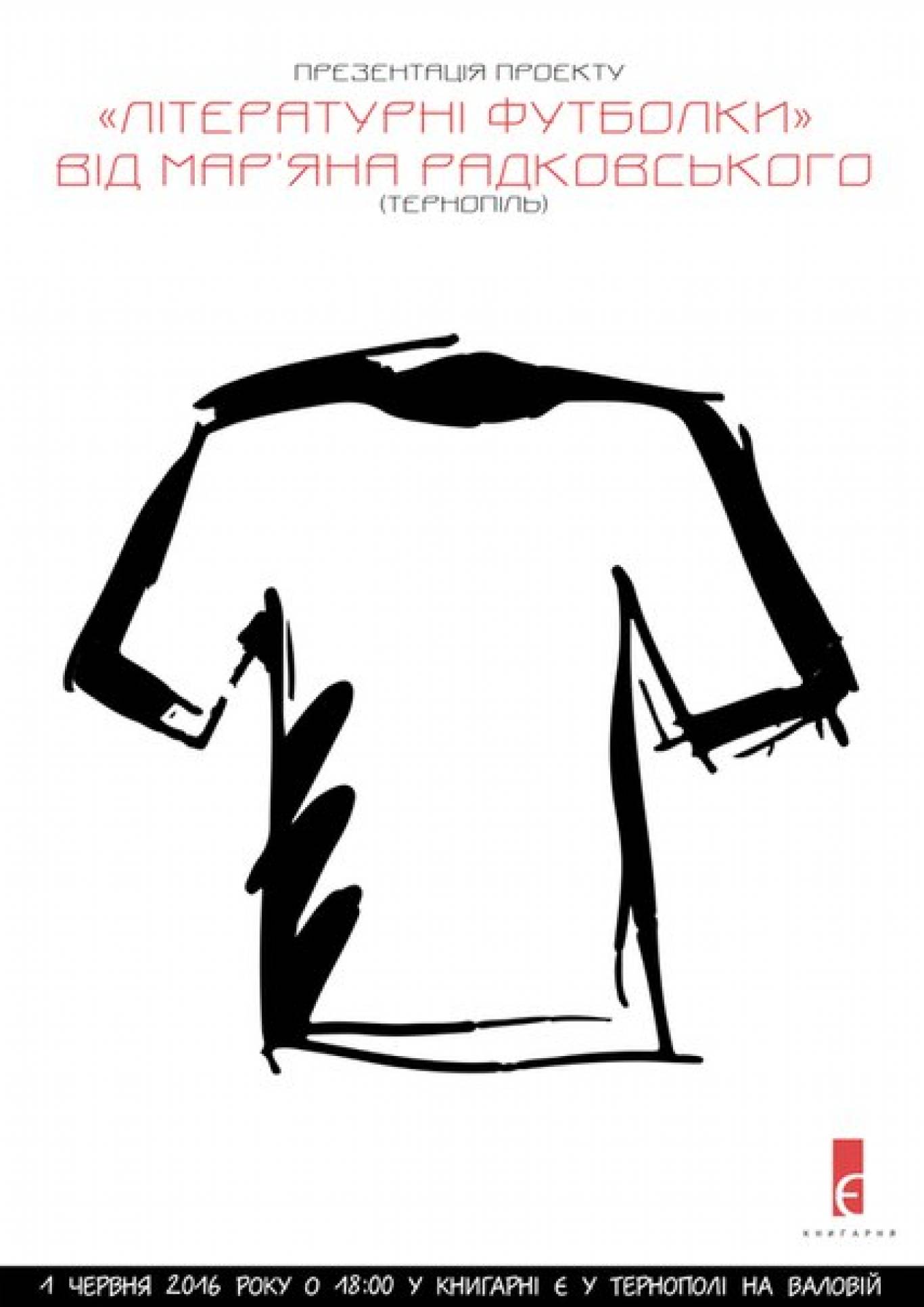 Книгарня "Є" запрошує на презентацію проекту "Літературні футболки" від Мар’яна Радковського, яка відбудеться 1 червня. Початок – о 18.00. Вхід - вільний.
