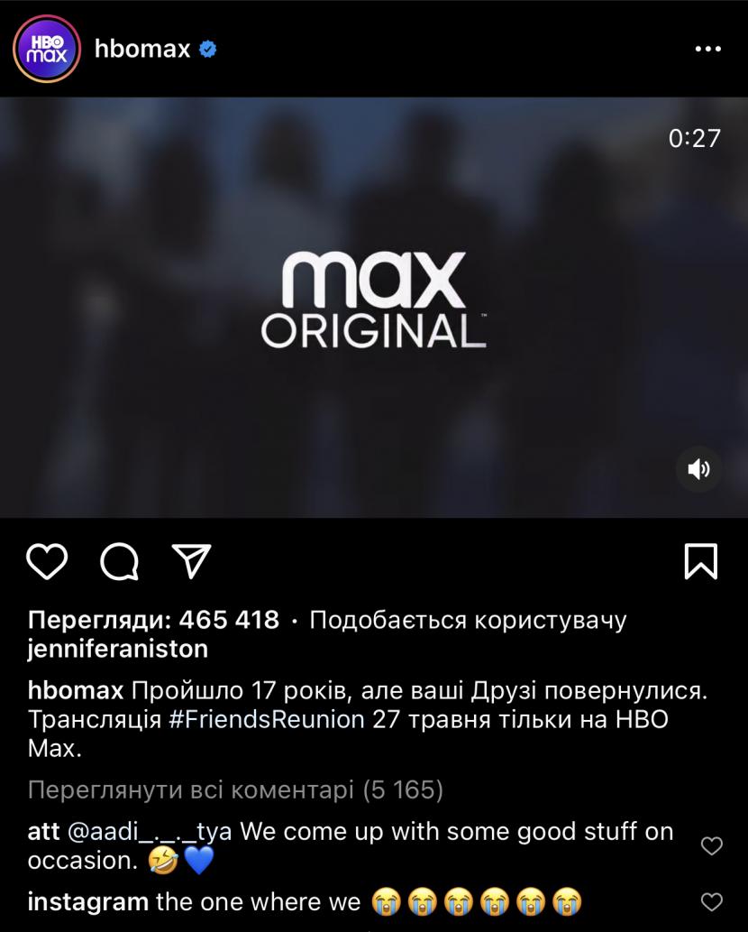"Нарешті, щоб уникнути непорозумінь ми хочемо прояснити, що це не новий оригінальний епізод серіалу. Актори виступатимуть в ролі самих себе, не як їх улюблені персонажі", - повідомили у HBO Max.