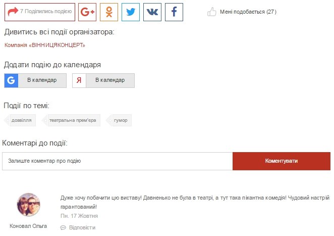 Ну і звісно, переглядаючи одну подію, читачеві пропонується переглянути інші події по темі, анонси з даної рубрики та рекомендовані редакцією афіші.