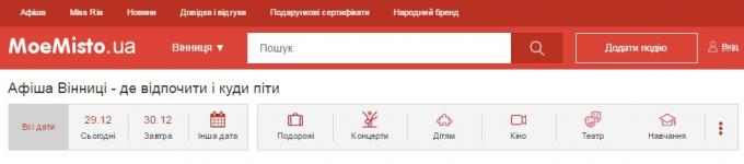 Головна мета нового сайту MoeMisto.ua - це можливість побачити та знайти усі актуальні події, які будуть у Вінниці, не зважаючи на їх кількість. Всі анонси вінницької афіші поділені на певні тематичні категорії. І відповідно, всі заходи можна фільтрувати та переглядати по напрямках, так званих "рубриках":