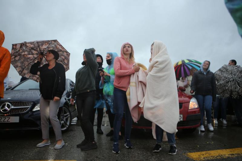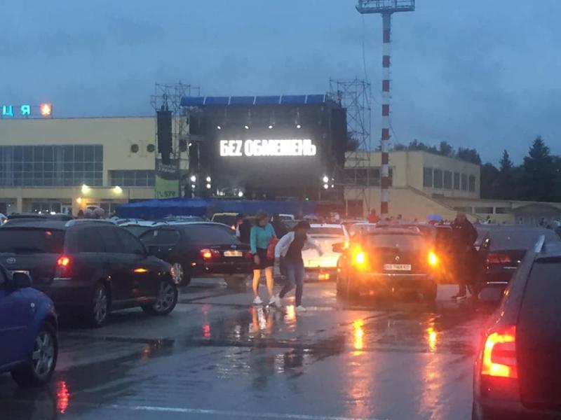 Попри шалений вітер та зливу, фанати гурту відривались біля своїх авто, а замість оплесків лунали сигнали автомобілів.