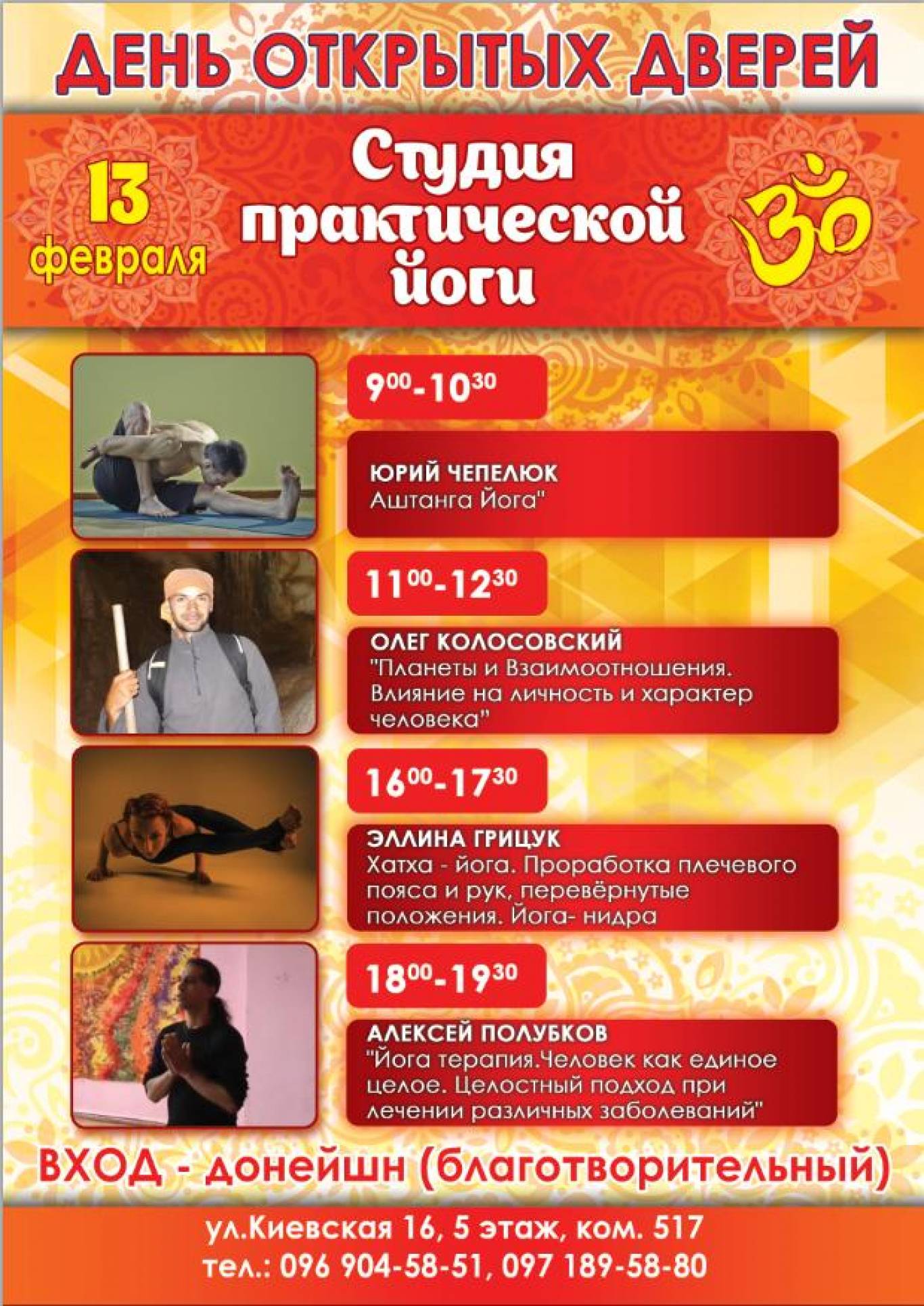 Дорогі друзі, практикуючі, жителі міста Вінниця запрошуємо Вас на День Відкритих Дверей в Студію Практичної Йоги 13 лютого, початок о 9.00