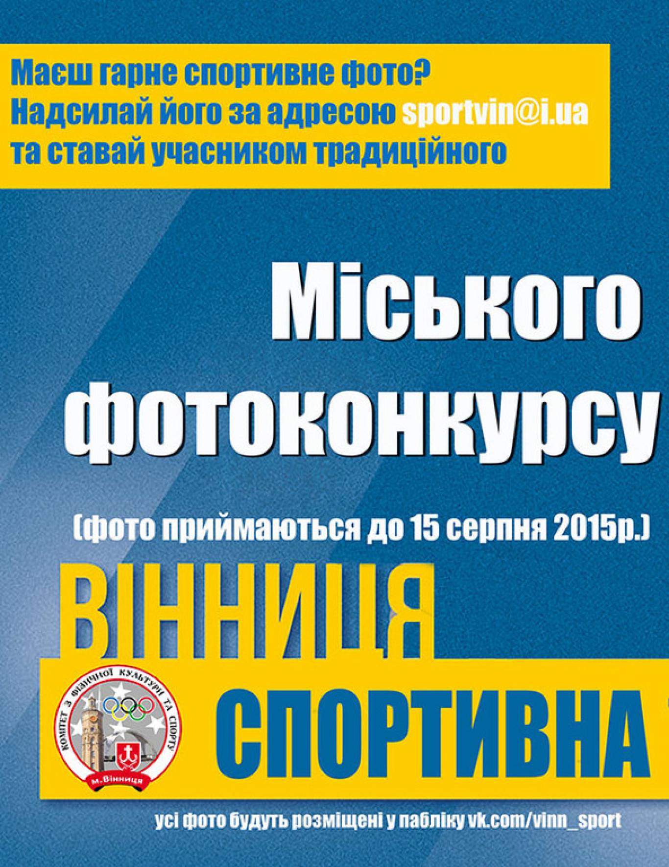 Четвертий міський конкурс фотографій «Спортивна Вінниця - 2015» уже розпочато. Він триватиме з 15 березня по 15 серпня.