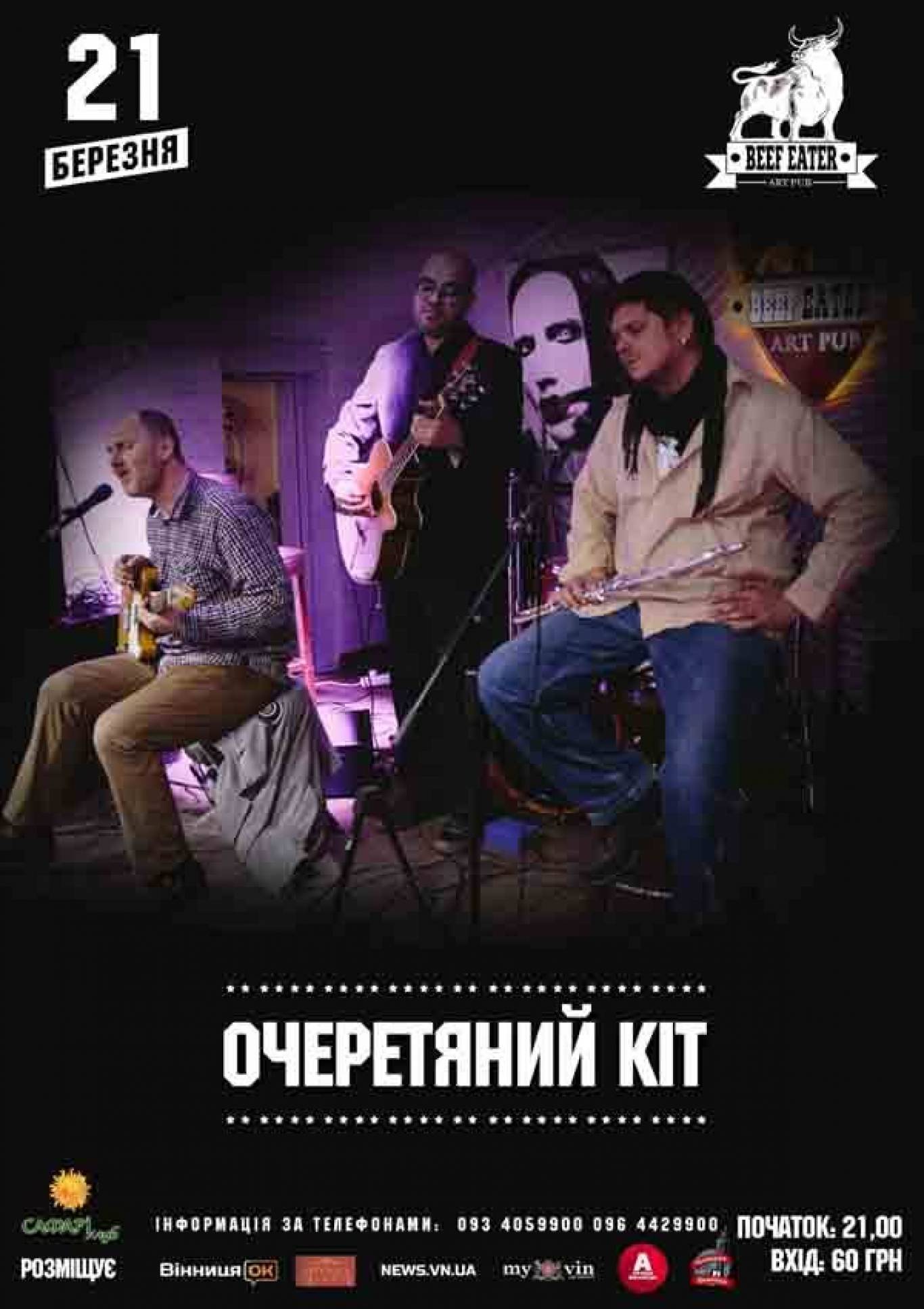Гурт «Очеретяний кіт» співатиме для своїх шанувальників 21 березня у арт-пабі Beef Eater!