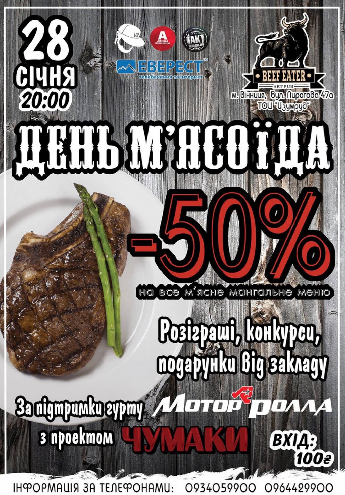 Арт-паб запрошує 28 січня на День м'ясоїда!