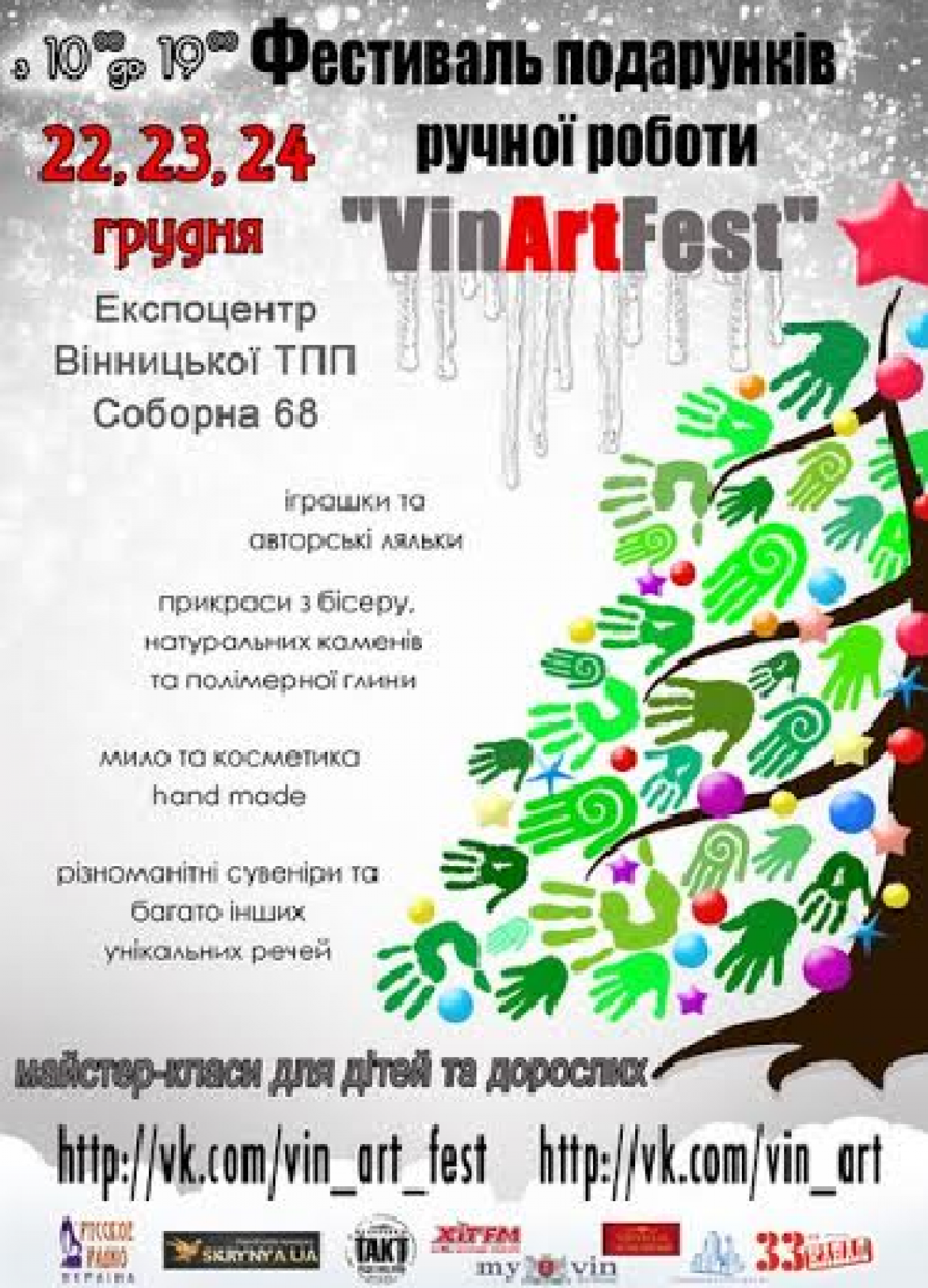 З 22 по 24 грудня у Вінниці  в експоцентрі Вінницької торгово-промислової палати відбудеться вже третій, на цей раз новорічний молодіжний фестиваль прикладного мистецтва, відомого серед молоді як ”hand made” під назвою «VinArtFest»!