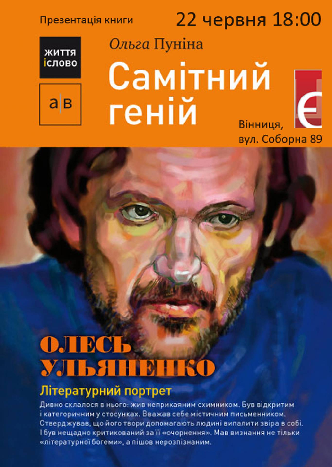 Книгарня «Є» та видавництво «Академвидав» запрошують на презентацію книжки Ольги Пуніної «Самітний геній. Олесь Ульяненко».