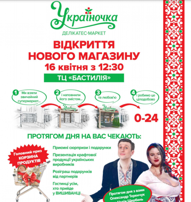 Святкове відкриття Україночки у ТР Бастилія, що по вул. Пирогова 31 заплановане на 16 квітня!