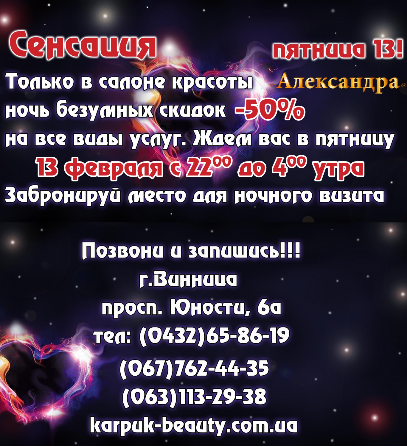 На вас чекають знижки до - 50 % 13 лютого з 22.00 до 04.00!