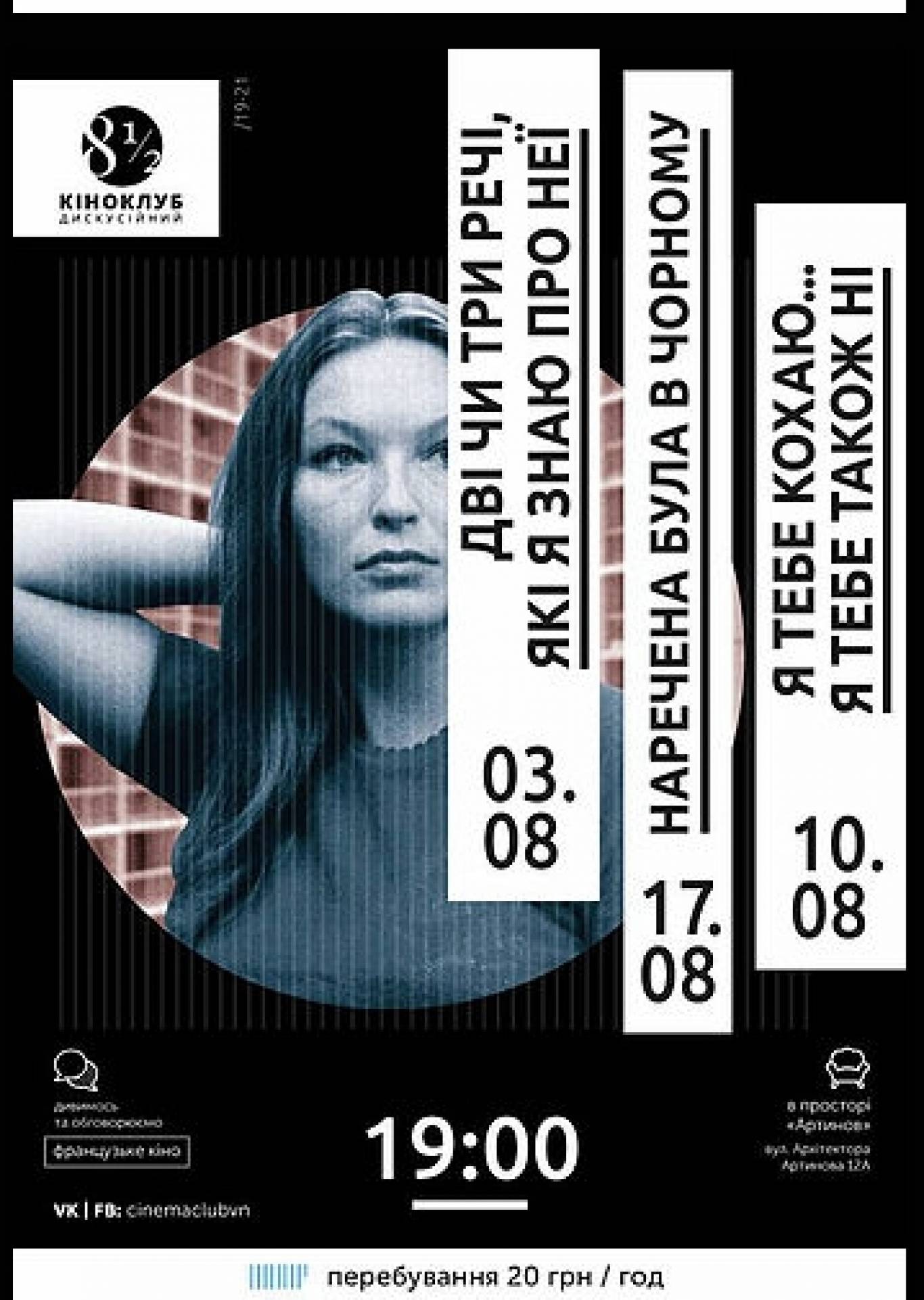 У креативному просторі Артинов, в рамках дискусійного кіноклубу "8½"  відбудуться покази французьких кінострічок  в рамках тижня французького кіно.