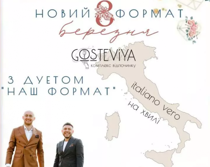 8 березня незабутньо святкуватимуть у Готельно-ресторанному комплексі Гостевія з дуетом "Наш формат"