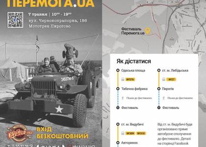 7 мая на киевском мототреке в Пирогово состоится Военно-исторический фестиваль ПЕРЕМОГА.UA. Мероприятие посвящено 72-летию окончания Второй мировой войны. Формат фестиваля – «Живая история», то есть реконструкция эпохи с полным доступом зрителей, интерактивный музей под открытым небом на один день. На протяжении дня будет открыт доступ к историческому парку, состоящему из инсталляций-лагерей, представляющих армии стран, принимавших участие во Второй мировой войне: США, Великобритания, СССР, Германия, Италия, а также армии УПА. Посетив военные лагеря, можно будет увидеть реконструкцию полевой жизни солдат, познакомиться с формой, снаряжением, бытовыми предметами и, конечно, военной техникой. Для гостей фестиваля предусмотрена интересная и познавательная программа. Представители военно-исторического движения и профессиональные историки будут проводить экскурсии, открытые для всех желающих. В течении дня пройдет ряд постановочных боев-реконструкций, демонстрирующих действия разных подразделений во время военных действий. Также, на фестивале будет представлена коллекция действующих исторических автомобилей, для гостей предусмотрена возможность прокатиться на легендарных «Виллисах», «Доджах» и «Шевролетах». Кроме того, будет организована ярмарка с развлекательными зонами: ретро-цирюльня 1940-х годов, историческое фотоателье, стрелковый тир, мастер-классы по танцам, историческим костюмам и еде, секреты полевого быта и прочее. Организаторами фестиваля являются объединение клубов военно-исторической реконструкции и волонтерская организация помощи участникам АТО. Фестиваль проходит при поддержке исторического и географического факультета Киевского национального университета им. Т. Шевченка, исторического факультета Одесского национального университета. Фестиваль является некоммерческим мероприятием и не несёт никакого политического окраса. Мы пропагандируем изучение истории. Главное желание организаторов ¬– вызвать интерес к памяти о прошлом и благодарность за подвиг воинов, которые пожертвовали своей жизнью, чтобы мы жили в мире. Мы считаем знание истории необходимым условием для формирования полноценного мировоззрения современного человека и гражданина, приглашаем изучать её вместе с нами в увлекательной и интересной форме.