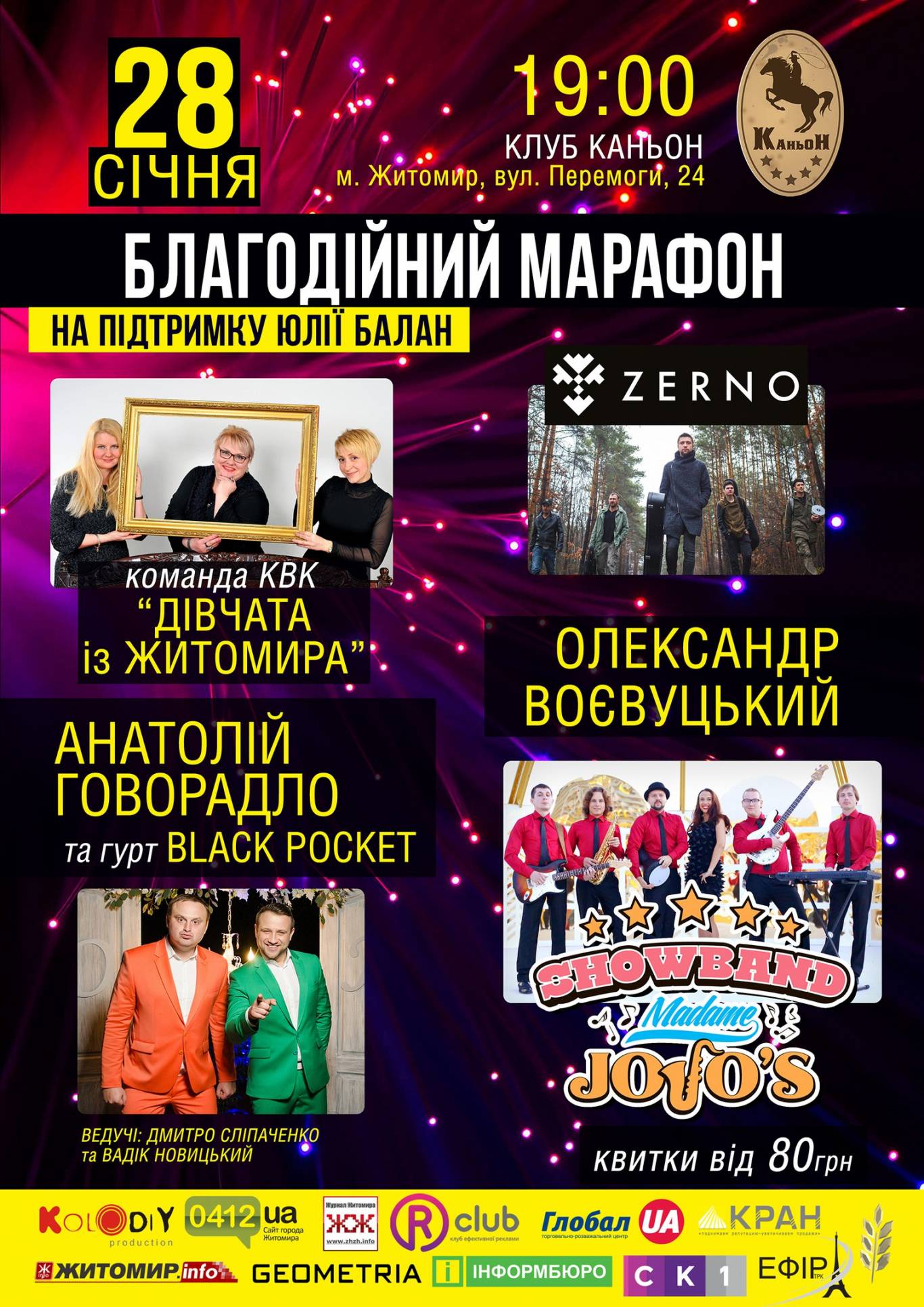Команда КВК «Дівчата із Житомира», гурт Зерно, Олександр Воєвуцький, Анатолій Говорадло та гурт Black Pocket.