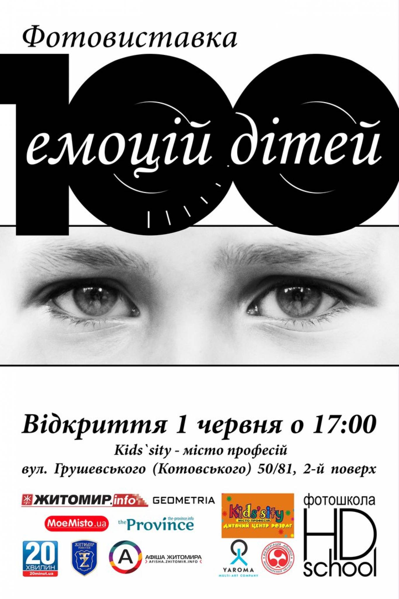 в дитячому розважальному центрі «Kids`sity – місто професій» стартує фотовиставка «100 емоцій дітей» з нагоди відзначення Дня захисту дітей. На виставці будуть представлені оригінальні портрети більше 100 дітей із найщирішими та найрізноманітнішими емоціями.