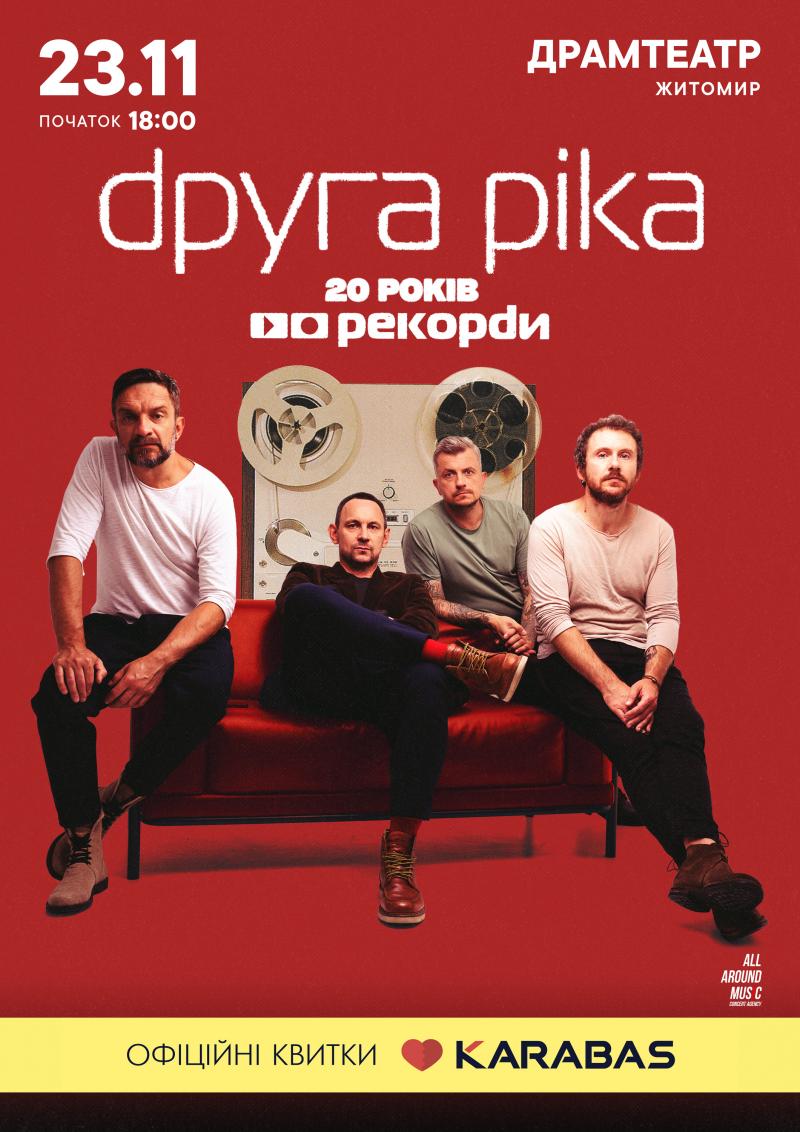 Цього року гурт «Друга Ріка» відзначає 20-річчя одного з найуспішніших альбомів у своїй дискографії — «Рекорди», хіти з якого досі лунають звідусіль. В рамках серії концертів до річниці платівки музиканти зіграють спеціальну програму «Рекорди. 20 років» в Житомирі!