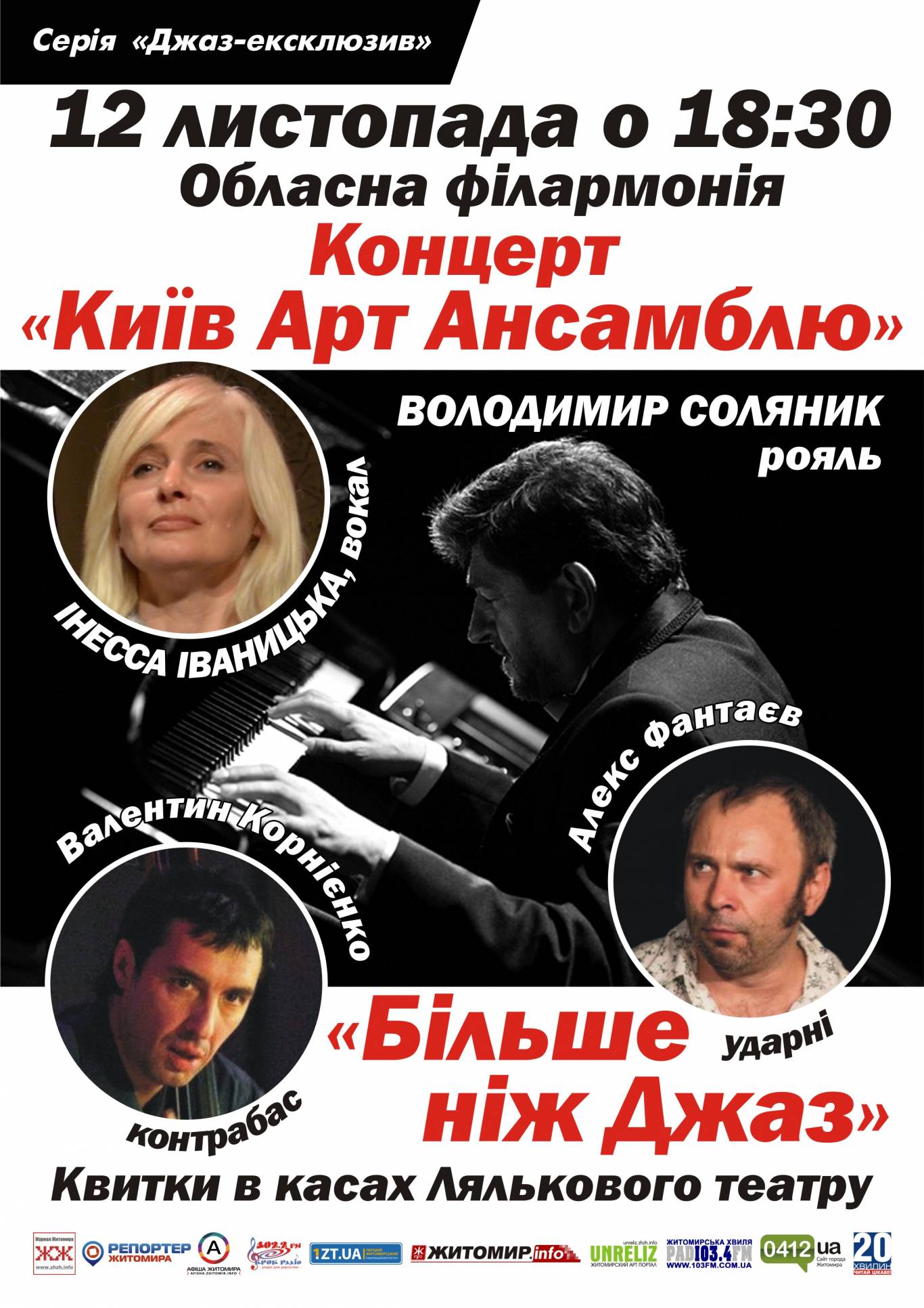 Добре відомий житомирянам маестро Володимир Соляник цього разу пропонує нам акустичну програму "Більше ніж ДЖАЗ", яка прекрасно прозвучить в просторі оновленої Житомирської філармонії.
