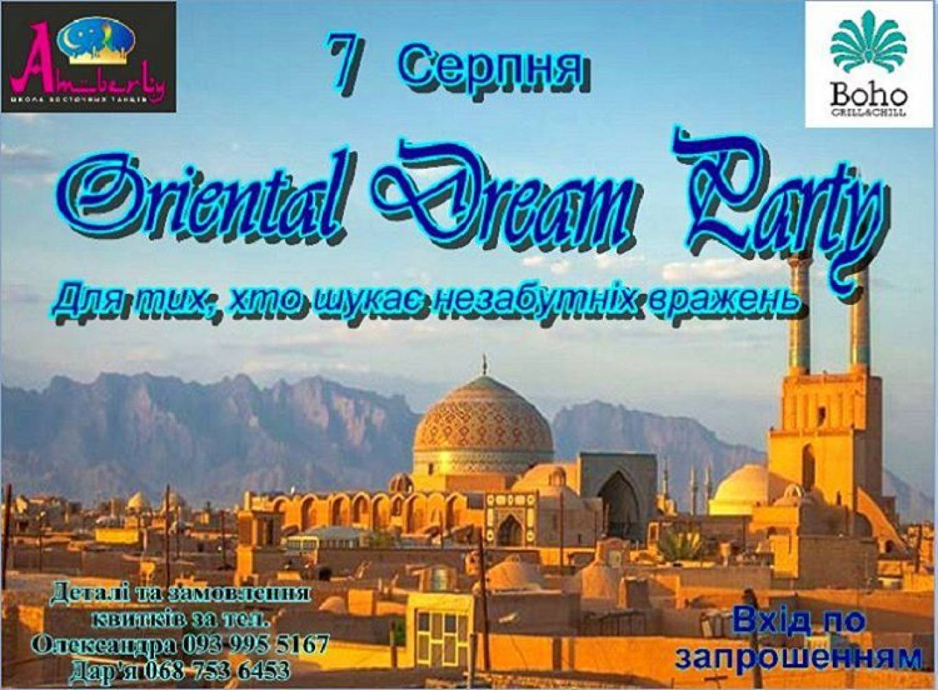 Чекаємо всіх ВАС на нашій ВЕЧІРЦІ "Oriental Dream Party" в шикарному ресторанчику Boho!