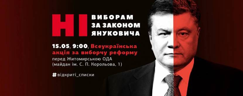15 травня о 9:00 на майдані імені С.П. Корольова в Житомирі відбудеться Всеукраїнська акція на підтримку виборчої реформи.